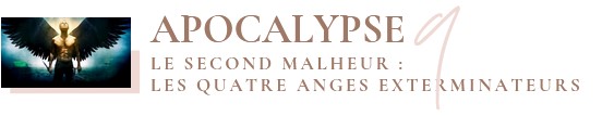 Le second malheur dont la durée n'est pas indiquée, est causé par les quatre anges enchaînés sur l'Euphrate. Ils sont prêts à intervenir pour exterminer le tiers des hommes. Des régions voisines de l'Euphrate : Commagène, Syrie, Coelè-Syrie, partent les quatre contingents de Cestius et des rois Antiochus, Agrippa, Sohémos. Ces anges amènent dans le pays d'innombrables cavaliers.