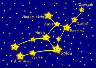 L'étoile la plus brillante de la constellation Vierge est SPICA, ce qui signifie un épi en français. Plus anciennement les hébreux l?appelaient ZERAH, ce qui signifie la semence.