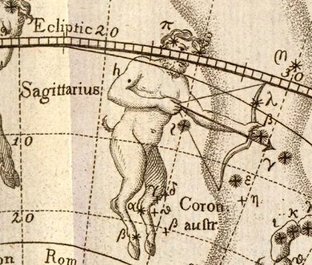 Le sagittaire tel qu?on le connaît actuellement est représentée par un homme-cheval. Apparemment, La constellation a subi plusieurs changements au cours de l'histoire. Une première version fut un archer, avant de devenir une créature imaginaire bipède à pied de bouc image ci-dessus, puis un centaure.