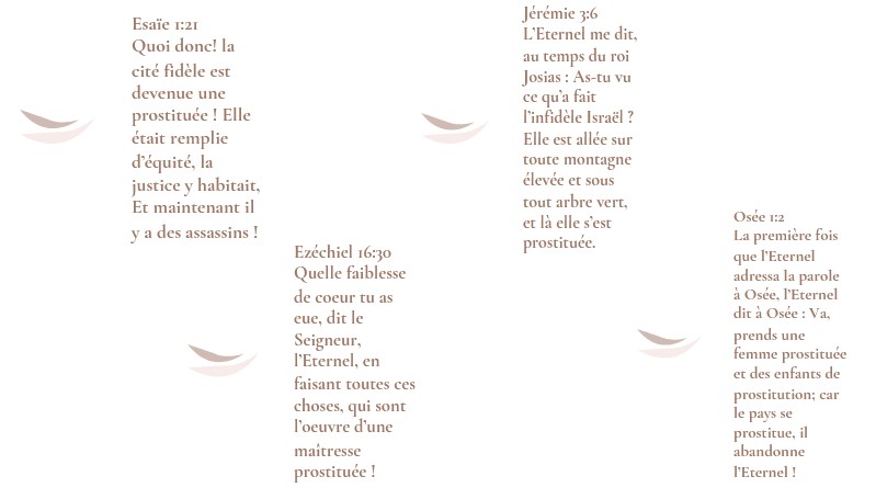Son idolâtrie était considérée comme "adultères" et "prostitution" (Jer 3.9; 5.7; Ezéchiel 23. 37)