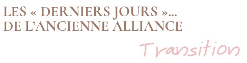 La Nouvelle Alliance se met progressivement en place, les anciennes lois subsistent toujours et beaucoup de convertis d?origine judéenne continuent à les suivre. Les apôtres eux-mêmes, lorsqu?ils sont à Jérusalem, continuent à suivre les ordonnances spécifiques de l?Ancienne Alliance. Une telle situation ne pouvait cependant être que provisoire et il fallait que l?Ancienne Alliance disparaisse complètement pour que la Nouvelle Alliance puisse être pleinement manifestée. C?est exactement ce qui semble s'être produit, dans les temps annoncés par Jésus.