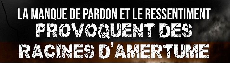 Et nous lisons que, tout comme les mauvaises herbes, l?amertume a des racines (Hébreux 12:15). Par conséquent, quand des personnes nous font du mal, nous pouvons tout raser en surface, frustration, déception, notre colère, nos blessures, tristesse, etc., en pensant que tout est réglé sans chercher ni pardon, ni réconciliation. Ou nous pouvons arracher notre amertume avant qu?elle ne prenne racine. Si vous n?arrachez pas la racine de l?amertume, elle reviendra immanquablement, plus grande que jamais. C?est comme une grosse racine principale : plus vous attendez, plus c?est difficile à arracher.