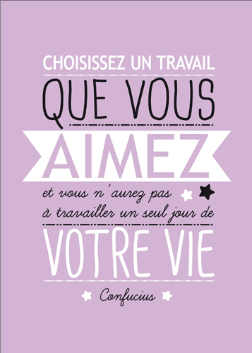 « Choisissez un travail que vous aimez et vous n?aurez pas à travailler un seul jour de votre vie. » Confucius.
