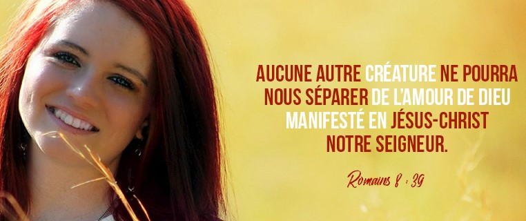 Romains 8:37 Mais dans toutes ces choses nous sommes plus que vainqueurs par celui qui nous a aimés. 38 Car j'ai l'assurance que ni la mort, ni la vie, ni les anges ni les dominations, ni les choses présentes ni les choses à venir, ni les puissances, 39 ni la hauteur, ni la profondeur, ni aucune autre créature ne pourra nous séparer de l'amour de Dieu manifesté en Jésus-Christ notre Seigneur.