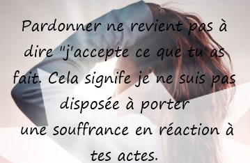 2. Le pardon, ce n?est pas permettre le mal. Pardonner, ne veut pas dire devenir « son complice » de l'offenseur, et l?encourager à continuer ses transgressions. Nous pouvons pardonner tout en demeurant honnêtes et lucides par rapport au comportement de quelqu?un.